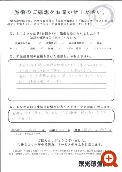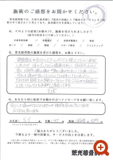 Q.栄光接骨院の施術を受けた感想を、お教え下さい。